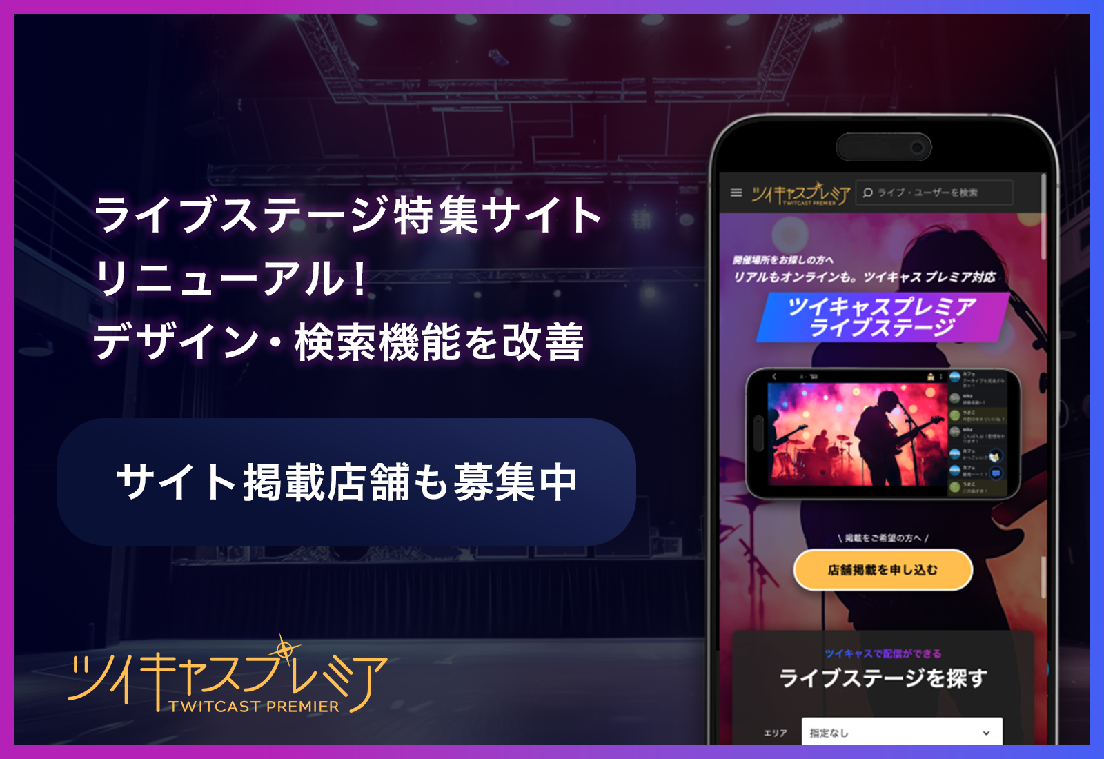 まずはここから、有料ライブ配信の場所探しをしよう。 『ツイキャスプレミア ライブステージ』特集サイトをリニューアル